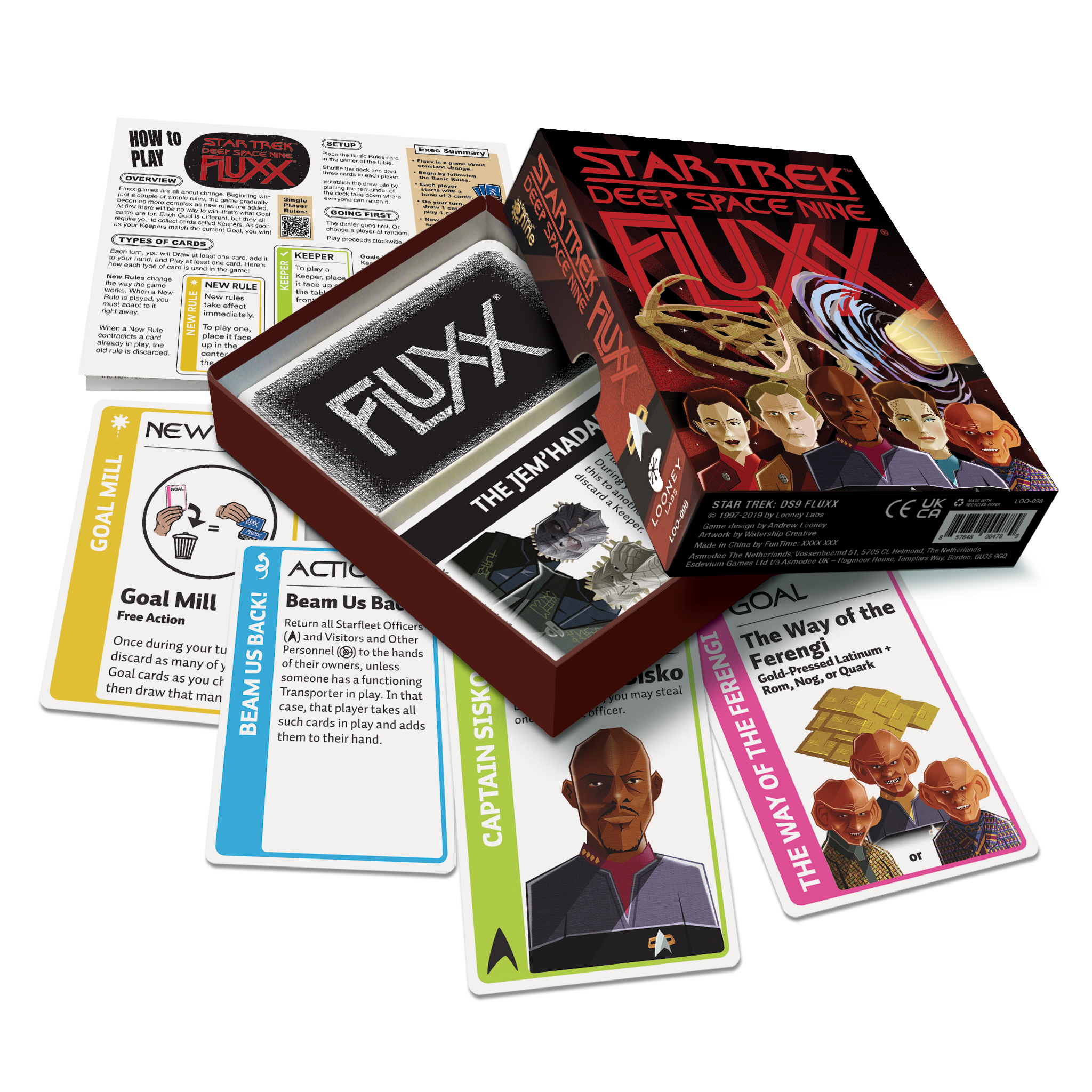 Explore the farthest reaches of the universe in Star Trek: Deep Space Nine Fluxx! Work alongside Benjamin Sisko, Quark, Jadzia Dax, Worf and all your other favorite space station personnel while you try to gather Gold-Pressed Latinum and study the Wormhole, but watch out for nasty Surprises and Creepers like the Founders and the Jem'Hadar!